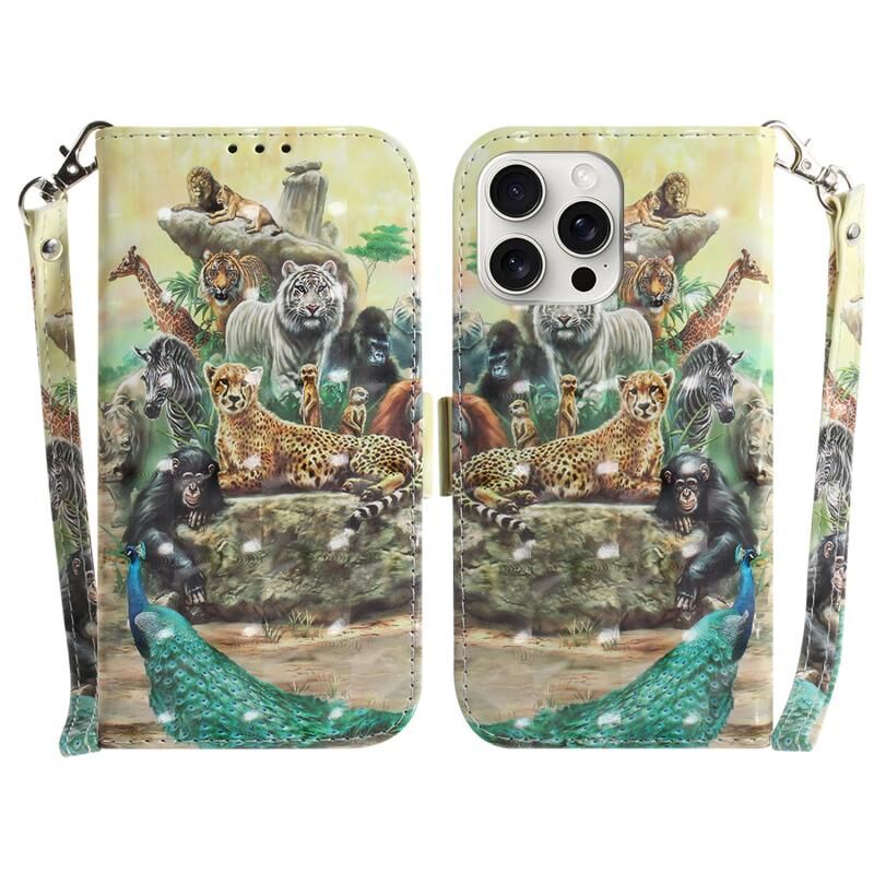 Θήκη τηλεφώνου δερμάτινη, οριζόντια, αναδιπλούμενη, πολύχρωμη 3D για iPhone 16 Pro Max (Ζωολογικός κήπος)