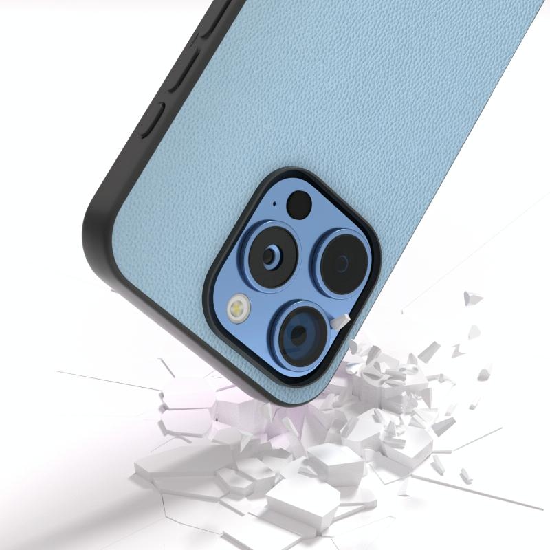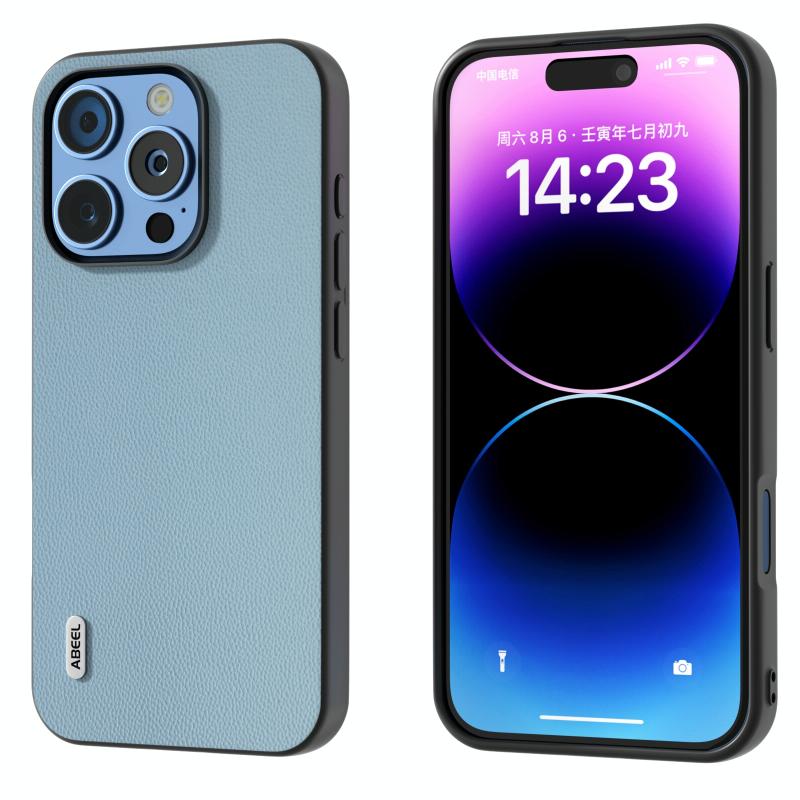 For iPhone 16 Pro Max ABEEL Black Frame Genuine Leather Elegant Phone Case(Sky Blue)
