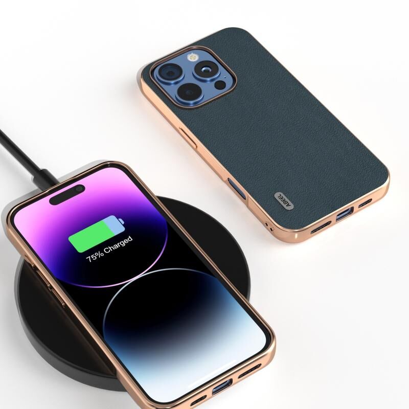 Θήκη κινητού τηλεφώνου με κυματιστό σχέδιο από γνήσιο δέρμα και ηλεκτρολυτικό πλαίσιο για iPhone 16 Pro Max ABEEL (Μαύρο)