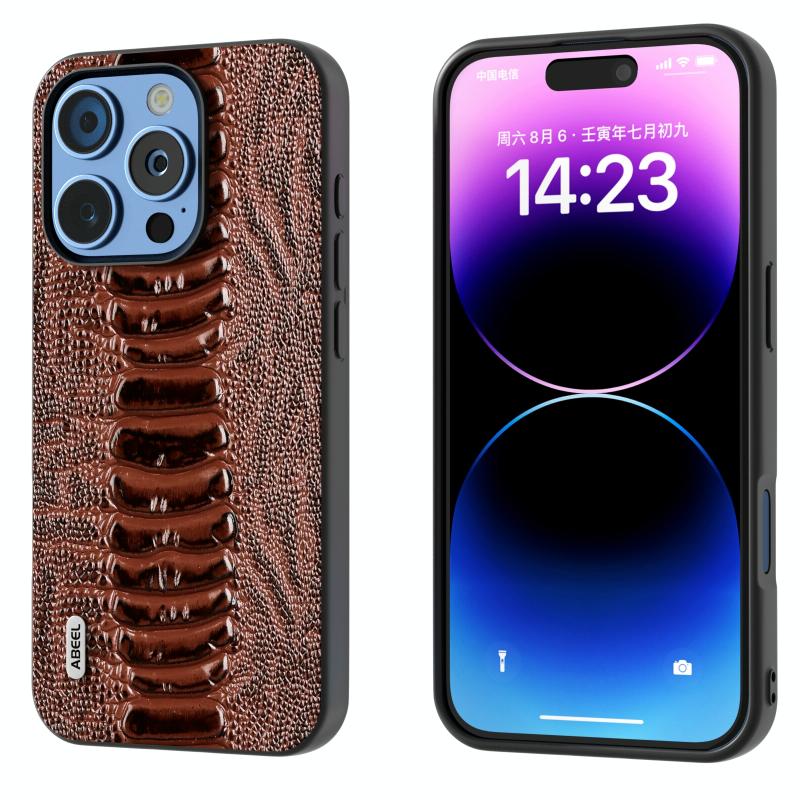 Θήκη τηλεφώνου Weilai Series από γνήσιο δέρμα ABEEL για iPhone 16 Pro Max (Καφέ)