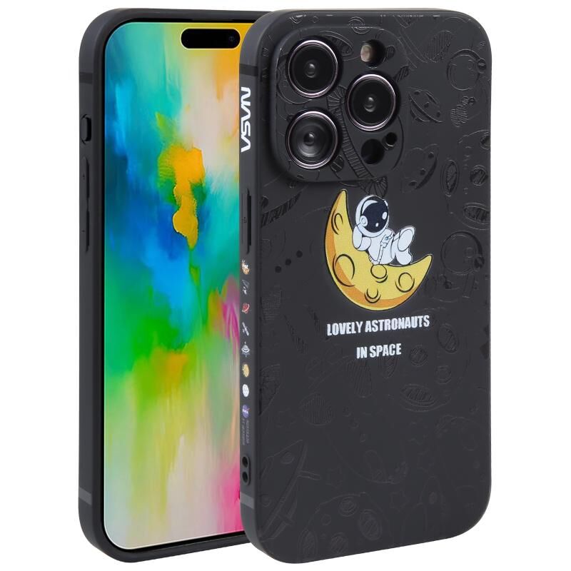 Θήκη τηλεφώνου για iPhone 16 Pro Max, σιλικόνης με ευθείες άκρες και σχέδιο αστροναύτη (Υπέροχος αστροναύτης-μαύρο)