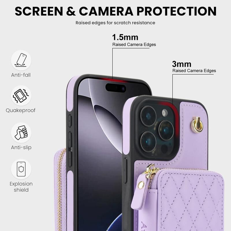 For iPhone 16 Pro Max AwQuer Crossbody Zipper Wallet Rhombic Leather Back Phone Case(Purple) (Awquer)