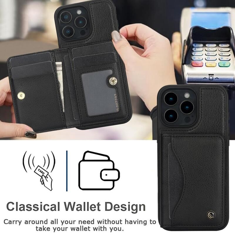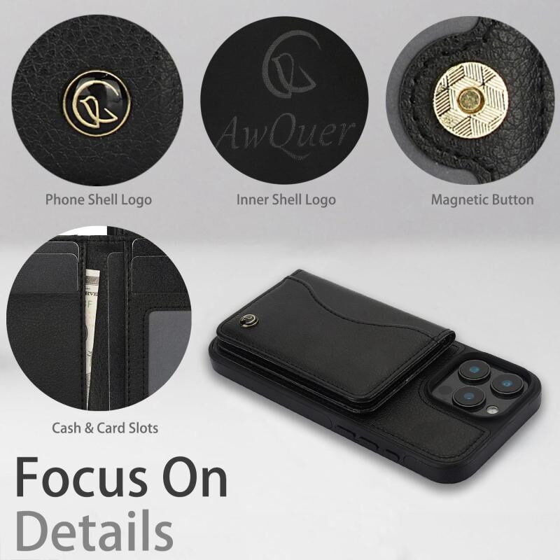 Θήκη τηλεφώνου AwQuer για iPhone 16 Pro Max, οριζόντια θήκη με κάρτες και δερμάτινη κατασκευή (Μαύρο) (Awquer)