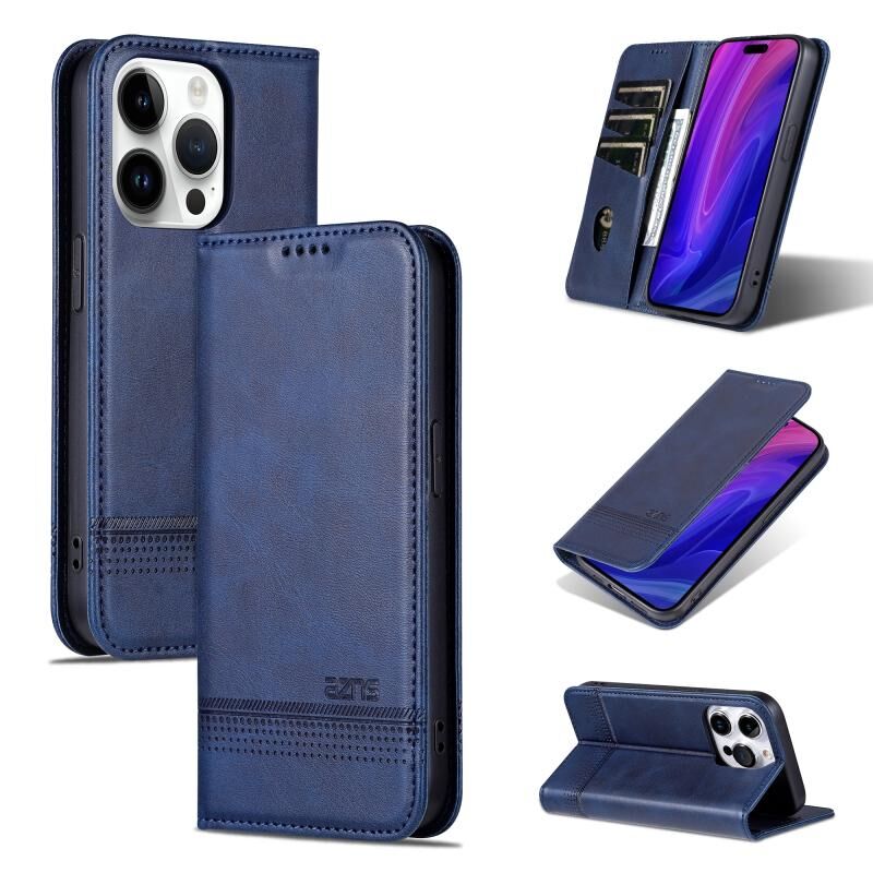 Θήκη τηλεφώνου από δέρμα με μαγνητική υφή μοσχαριού για iPhone 16 Pro Max AZNS (Ανοιχτό Καφέ) (AZNS)