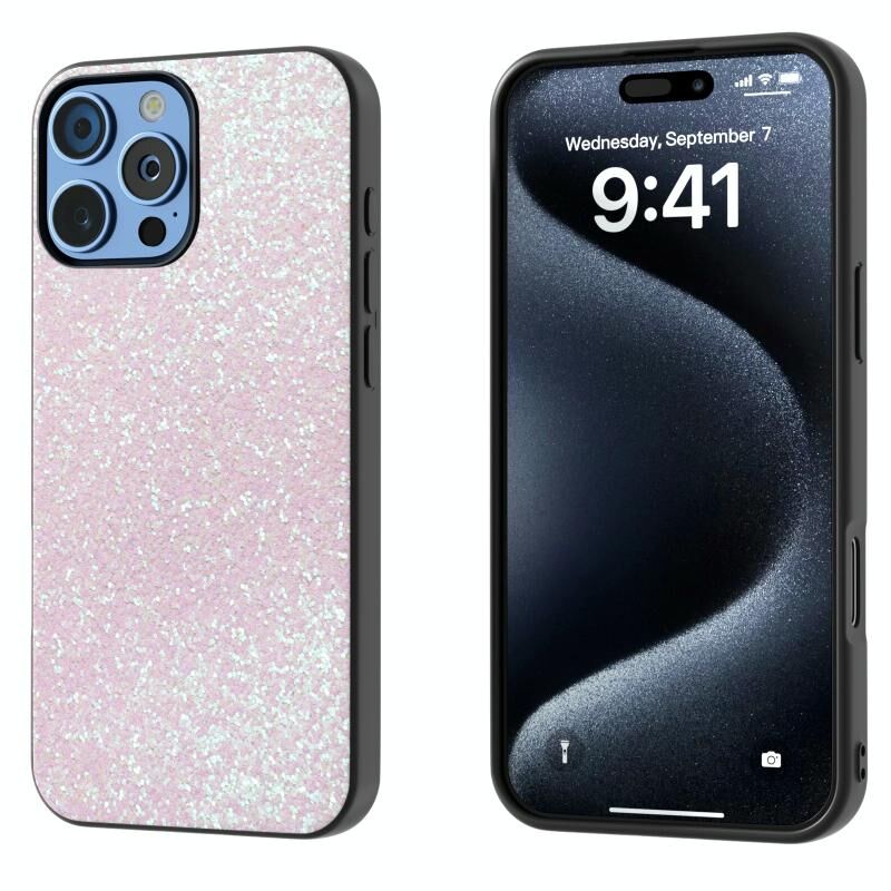 Θήκη τηλεφώνου για iPhone 16 Pro Max Μαύρο πλαίσιο, πολύχρωμη γκλίτερ (Σκούρο Ροζ)