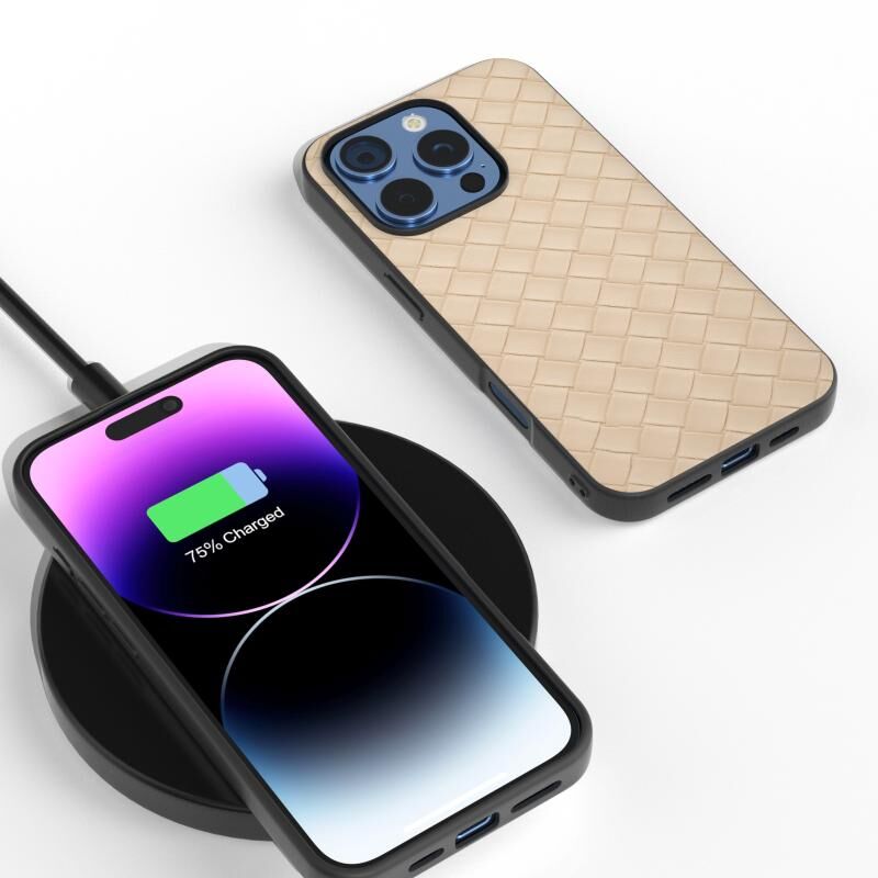 Θήκη τηλεφώνου για iPhone 16 Pro Max Μαύρο πλαίσιο, Υφή υφασμάτινη, PU (Μπεζ)