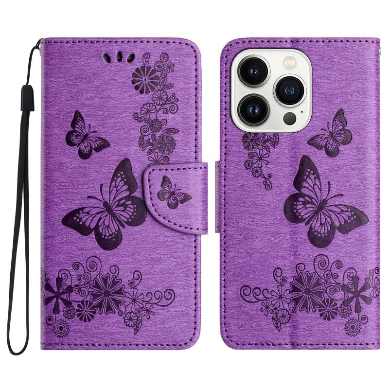 Θήκη τηλεφώνου από δέρμα με ανάγλυφο σχέδιο πεταλούδας για iPhone 16 Pro Max (Μωβ)