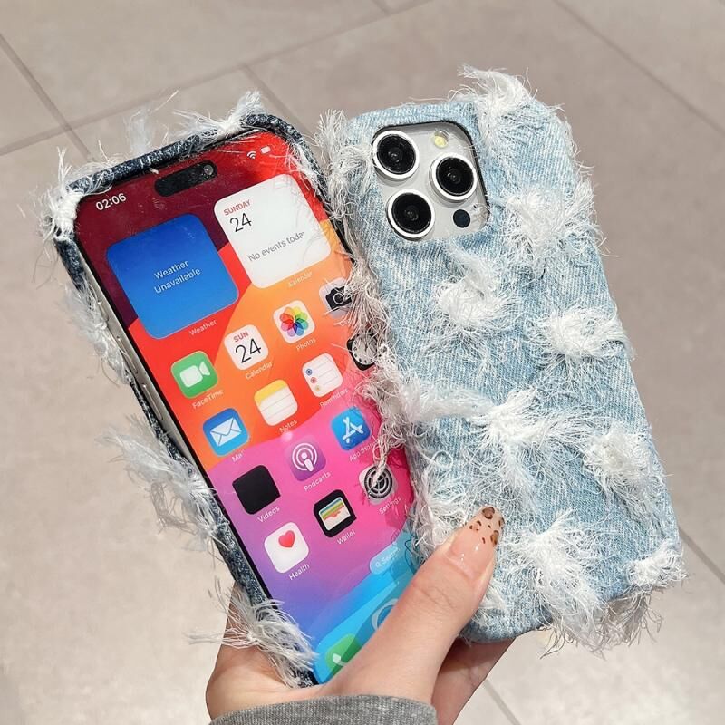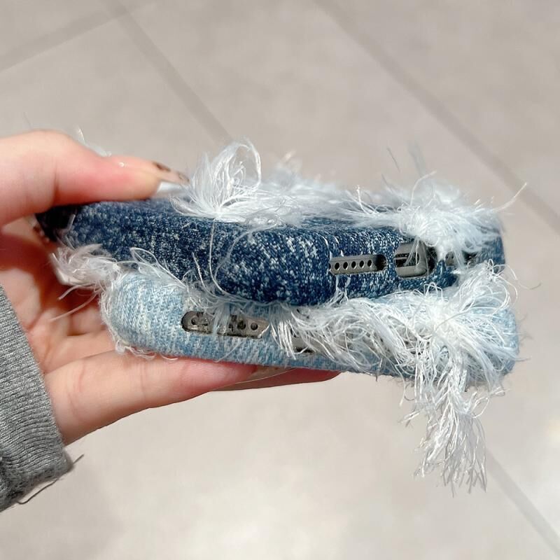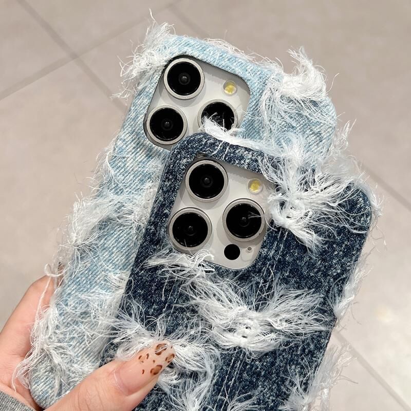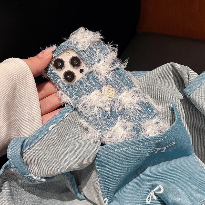 Θήκη τηλεφώνου από TPU με βελούδο τζιν καμέλια για iPhone 16 Pro Max (Σκούρο μπλε)