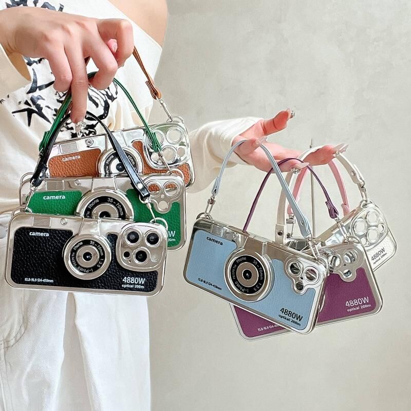 2. Επιχρυσωμένο στυλ ρετρό κάμερας με λουρί χειρός.