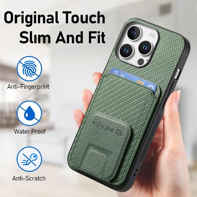 Για το iPhone 16 Pro Max Carbon Fiber Card τσάντα τσάντα Fold Stand υπόθεση τηλεφώνου (πράσινο)