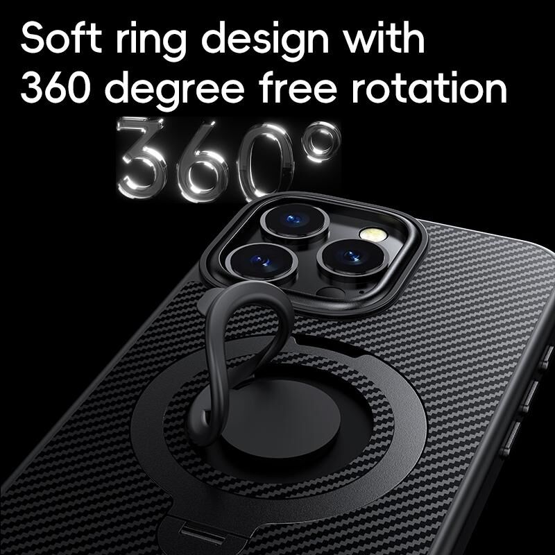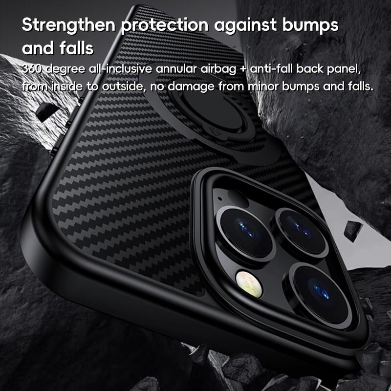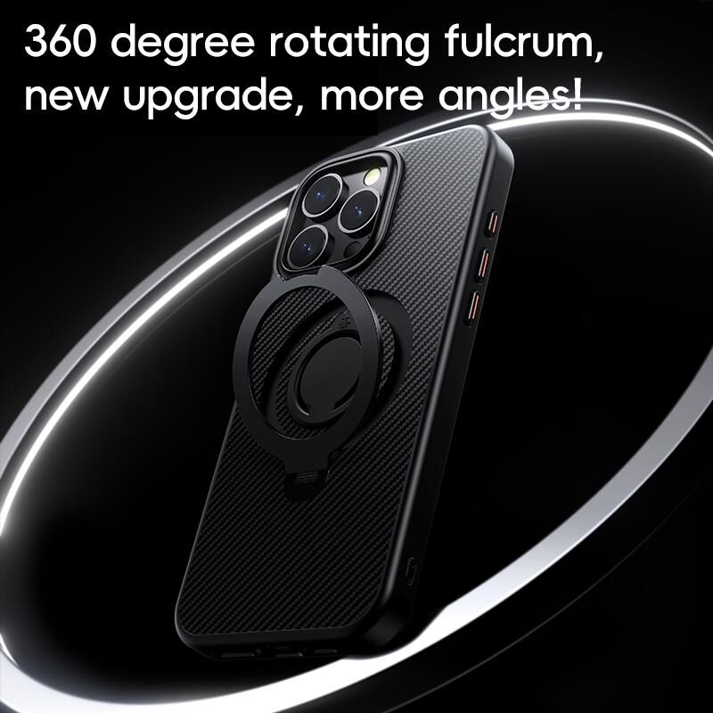 Θήκη τηλεφώνου MagSafe από ανθρακονήματα για iPhone 16 Pro Max με περιστρεφόμενη βάση 360 μοιρών (Μαύρο)
