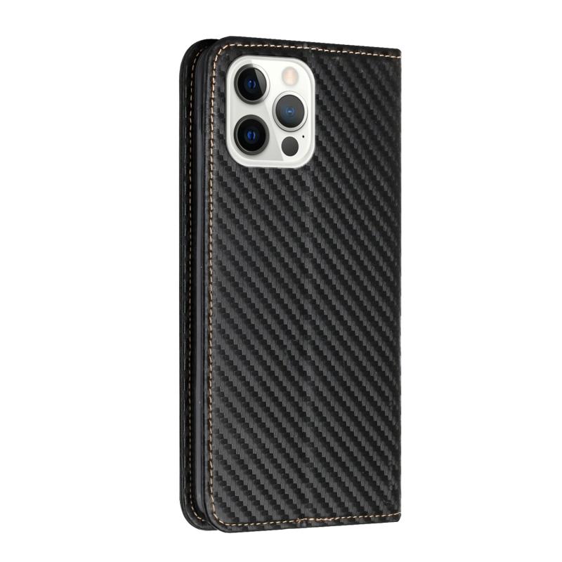 For iPhone 16 Pro Max Carbon Fiber Texture Magnetic Flip Leather Phone Case(Black)