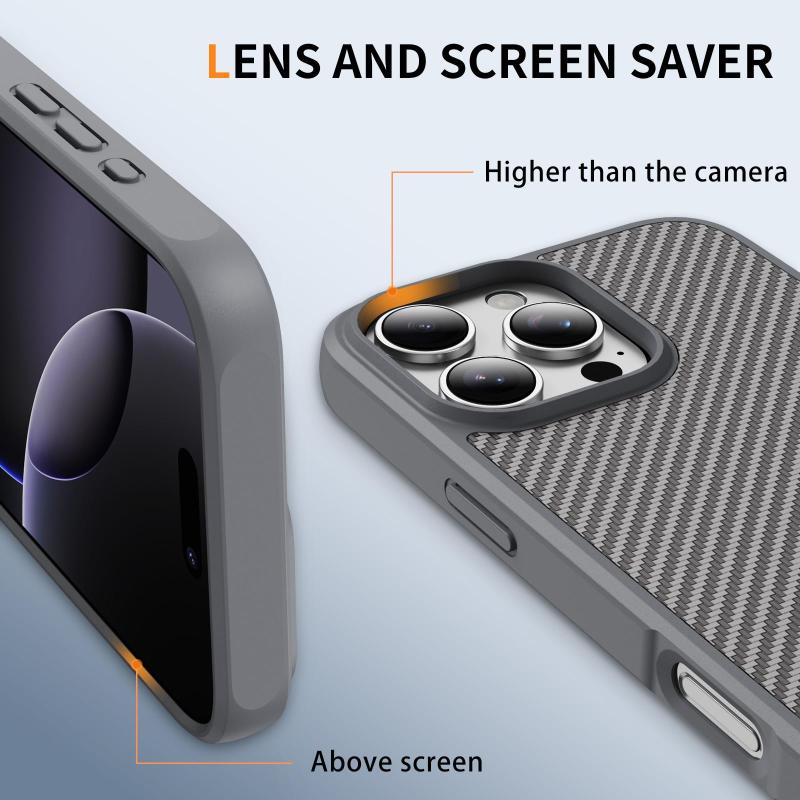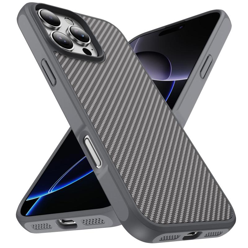 For iPhone 16 Pro Max Carbon Fiber Texture Skin-feel Acrylic TPU Phone Case(Grey)