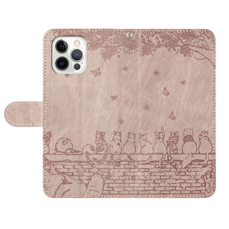 For iPhone 16 Pro Max Cat Embossing Pattern Leather Phone Case with Lanyard(Grey)