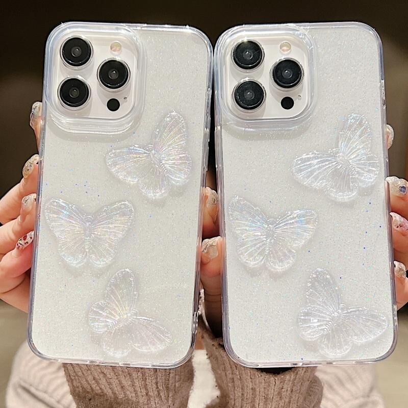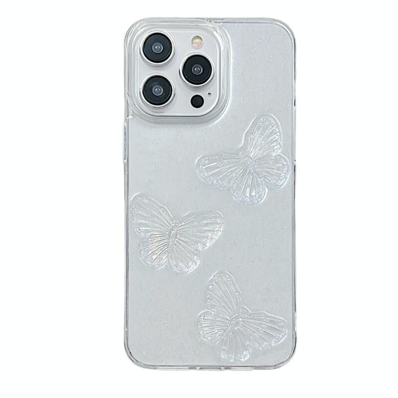 Θήκη τηλεφώνου TPU με κρυστάλλινα πεταλούδες για iPhone 16 Pro Max (Διαφανές)