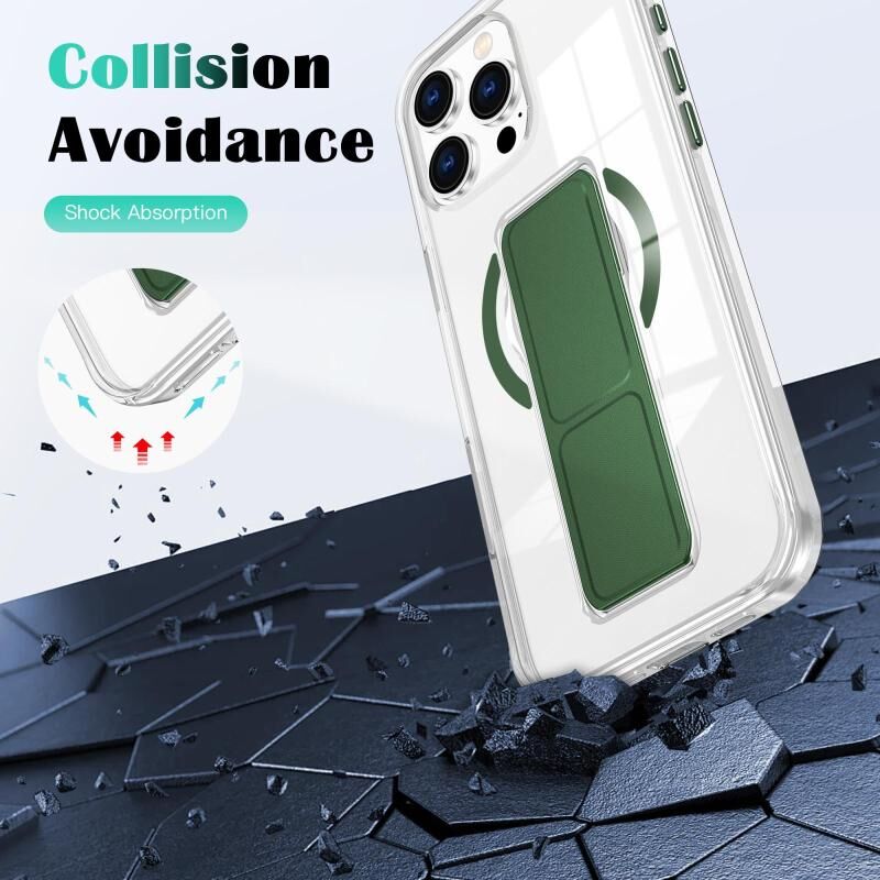 For iPhone 16 Pro Max Clear Wristband Holder MagSafe Phone Case(Dark Green)