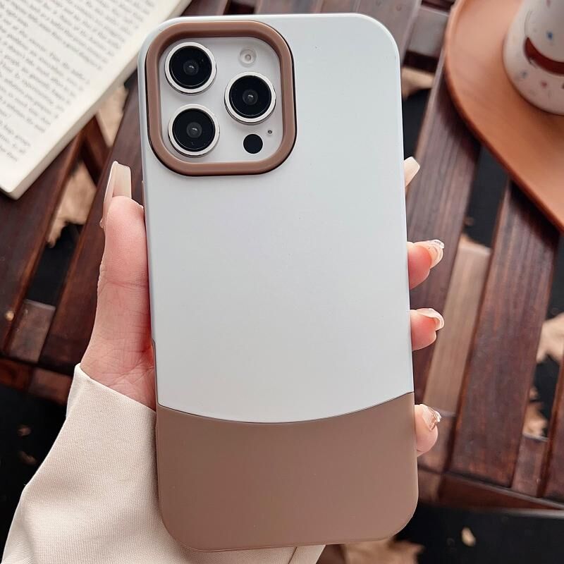 Θήκη κινητού τηλεφώνου 2 σε 1 για iPhone 16 Pro Max, Υβριδική από PC και TPU με αίσθηση δέρματος, Αντίθεση χρωμάτων (Ασημί + Καφέ)