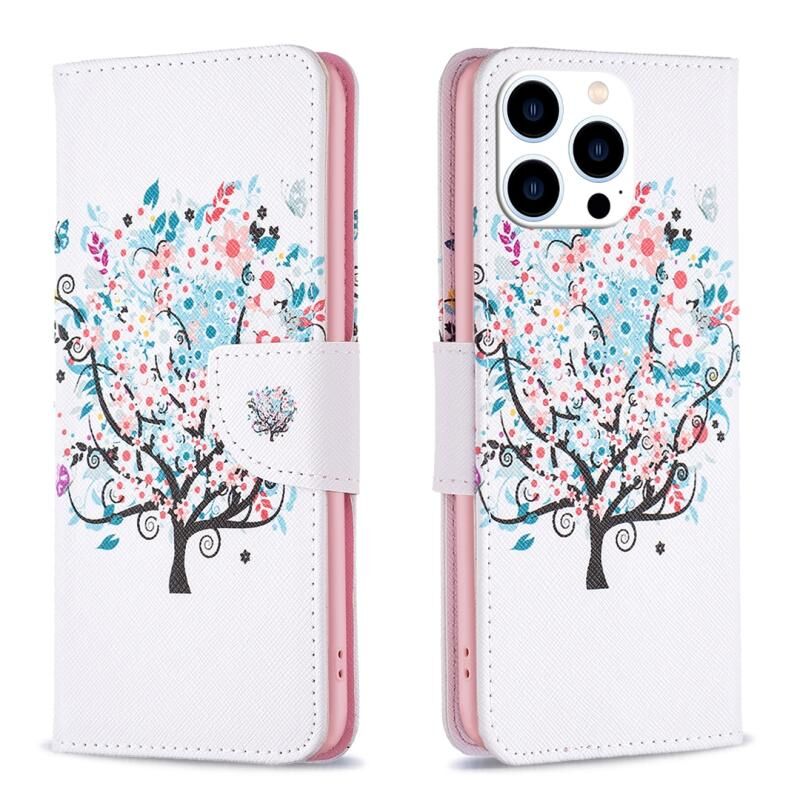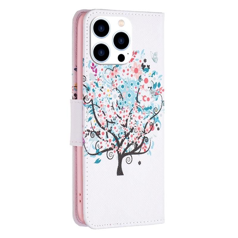 Θήκη τηλεφώνου από δέρμα με έγχρωμο σχέδιο (Δέντρο) για iPhone 16 Pro Max (Κόκκινο)
