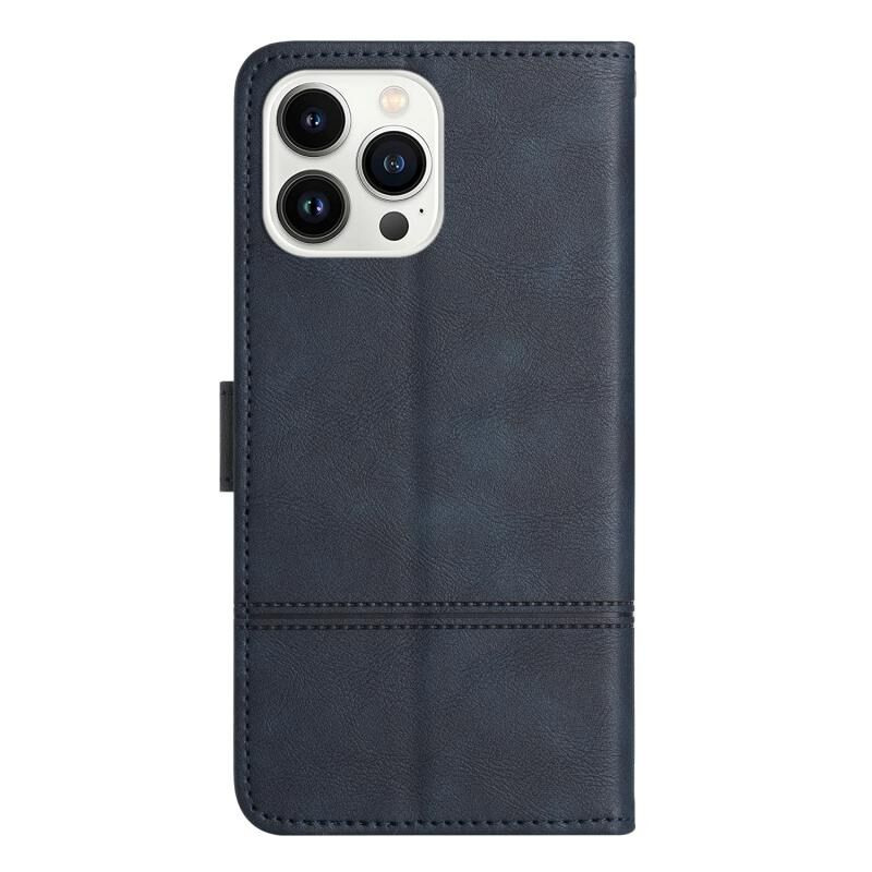 Θήκη τηλεφώνου από δέρμα με ραφές και υφή δέρματος αγελάδας για iPhone 16 Pro Max (Μαύρο)