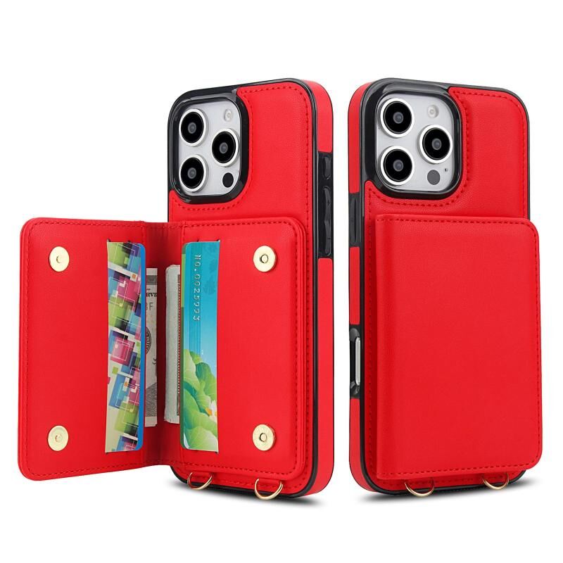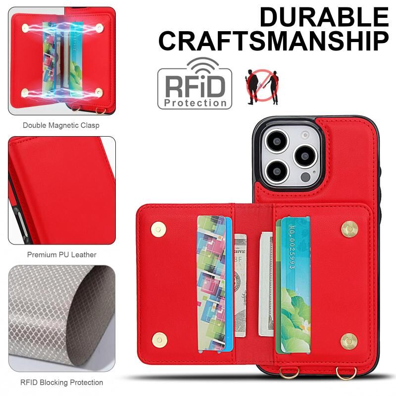For iPhone 16 Pro Max Crossbody Dual-buckle Wallet RFID Back Leather Phone Case(Red)