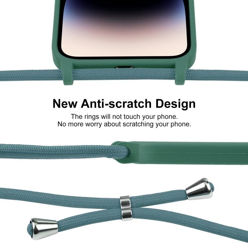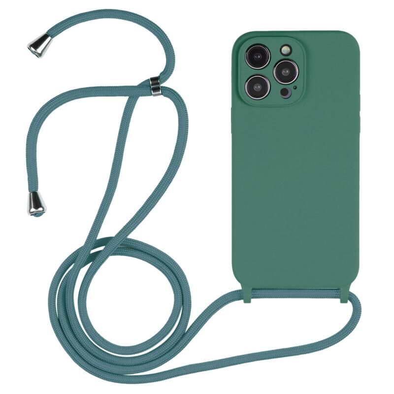 Θήκη για iPhone 16 Pro Max από υγρή σιλικόνη με λουρί Crossbody (Σμαραγδένιο πράσινο)