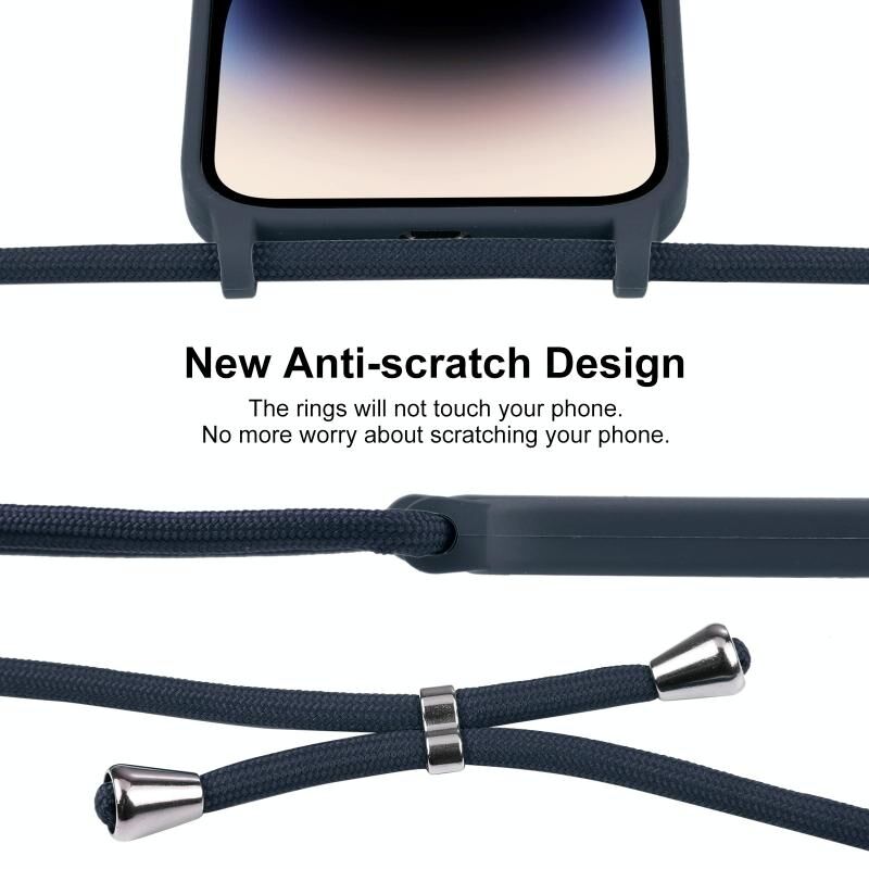 Θήκη για iPhone 16 Pro Max από υγρή σιλικόνη με λουρί Crossbody (Μπλε της νύχτας)