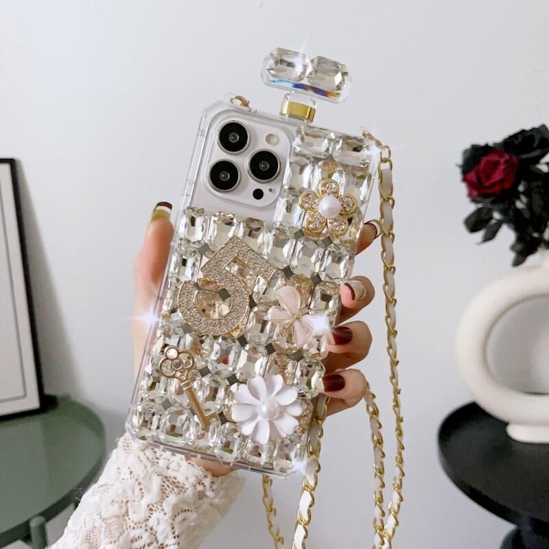 Θήκη κινητού τηλεφώνου iPhone 16 Pro Max, διαγώνια, μπουκάλι αρώματος, χειροποίητη, με ενσωματωμένα διαμάντια, από PC (Μαύρο)