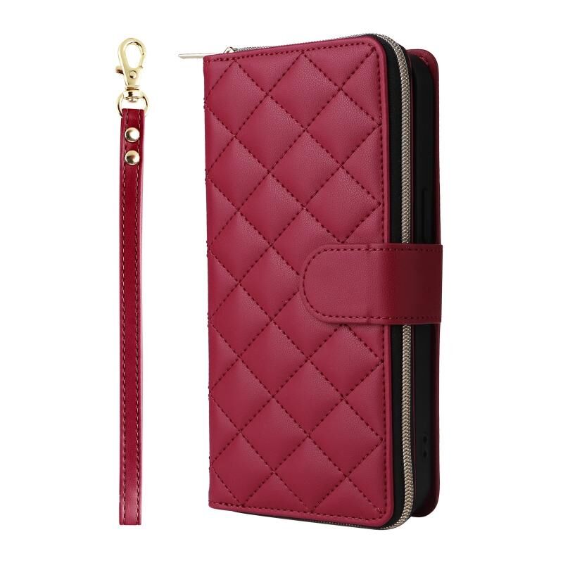 For iPhone 16 Pro Max Crossbody Rhombic Zipper Tower Buckle Leather Phone Case with Lanyard(Wine Red)