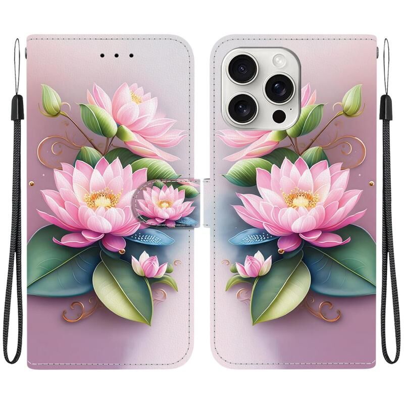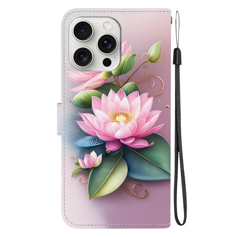 Θήκη τηλεφώνου από δέρμα με πολύχρωμη σχεδίαση κρυστάλλινης υφής για iPhone 16 Pro Max (Λωτός)