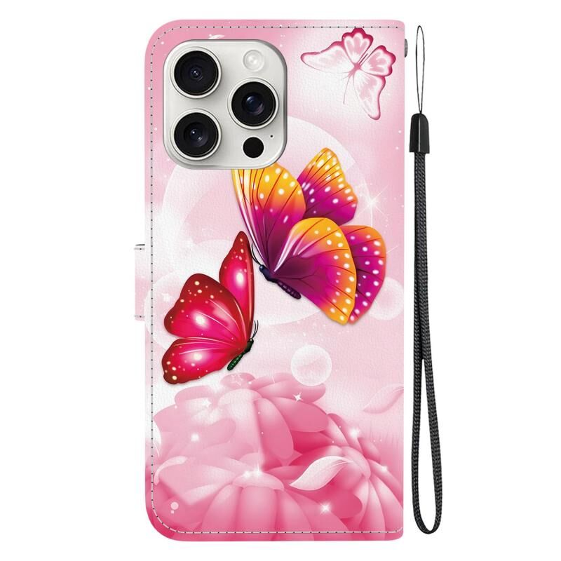 Θήκη τηλεφώνου από δέρμα με έγχρωμη σχεδίαση κρυστάλλινης υφής για iPhone 16 Pro Max (Χρυσά Φτερά Πεταλούδας)