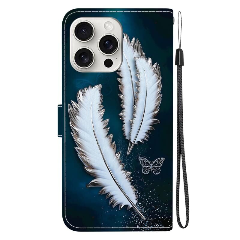 Θήκη τηλεφώνου από δέρμα με έγχρωμη σχεδίαση κρυστάλλινης υφής για iPhone 16 Pro Max (Χρυσά Φτερά Πεταλούδας)