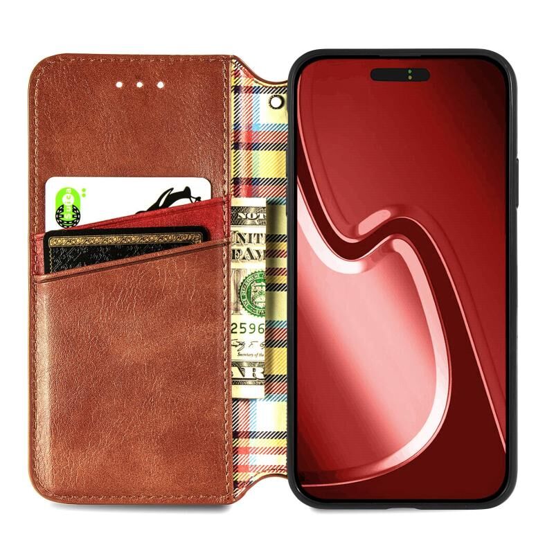 For iPhone 16 Pro Max Cubic Grid Pressed Magnetic Leather Phone Case(Brown)