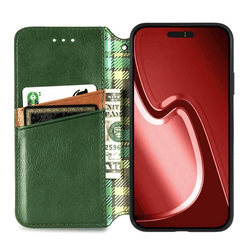 For iPhone 16 Pro Max Cubic Grid Pressed Magnetic Leather Phone Case(Green)