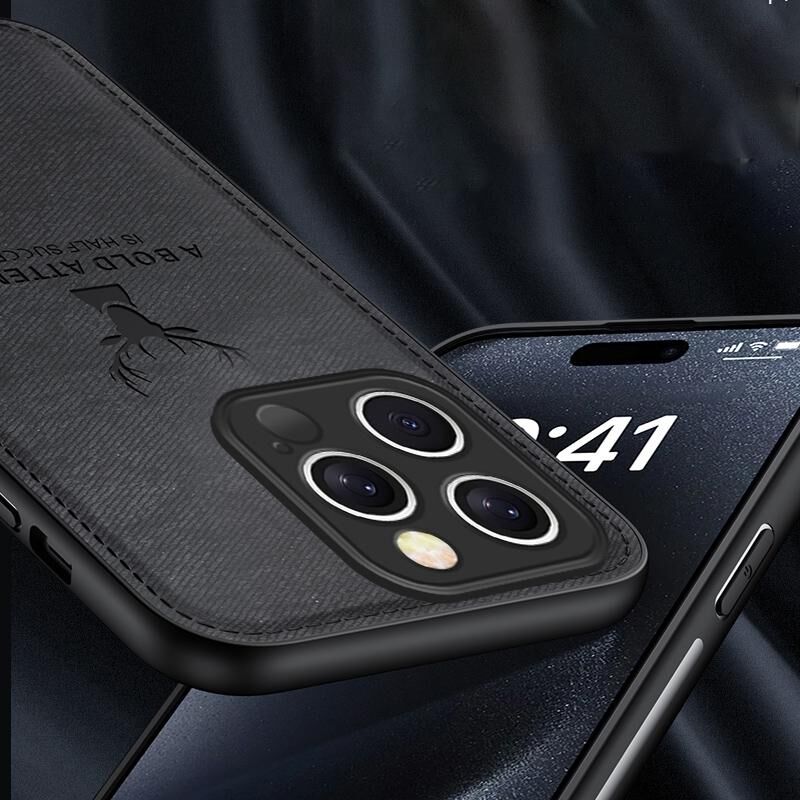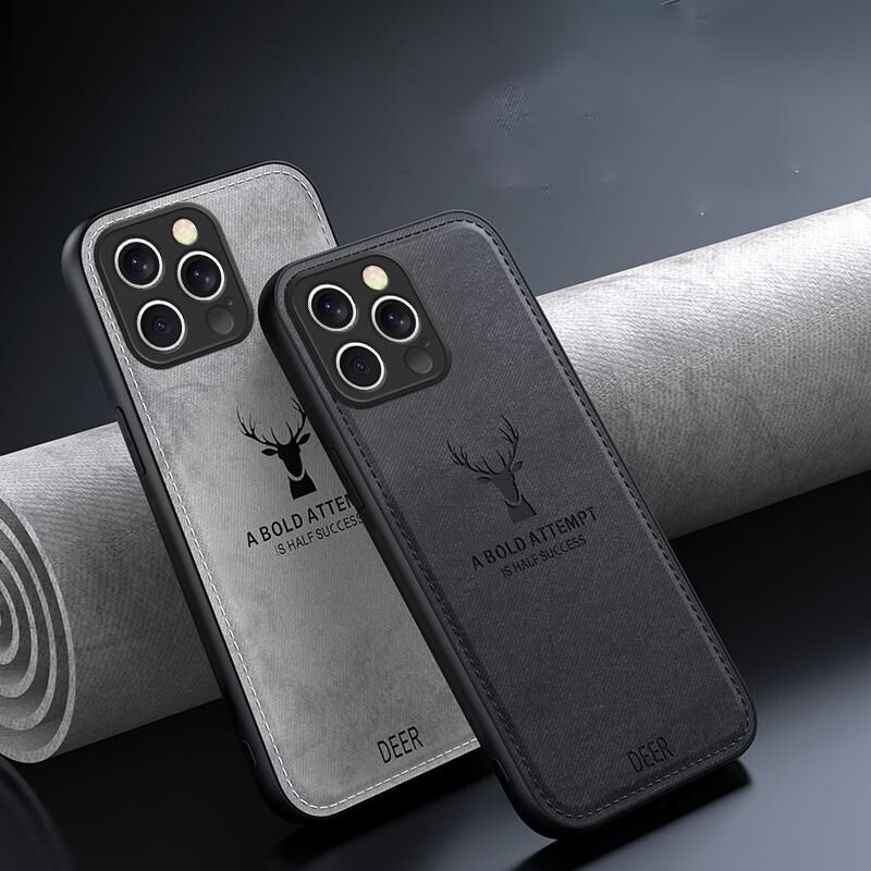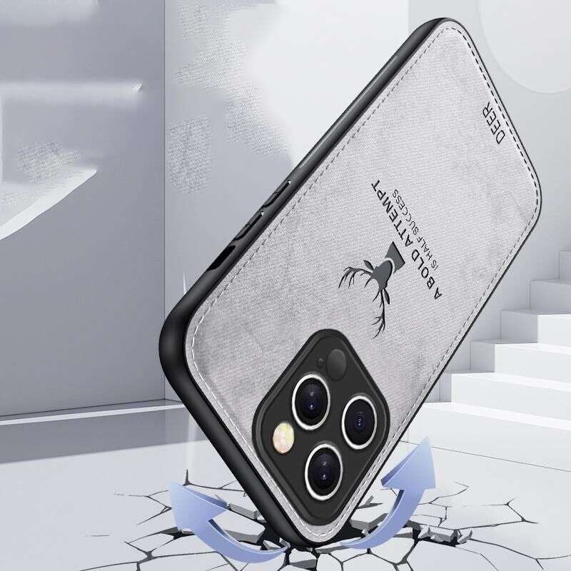 Θήκη τηλεφώνου πλήρους κάλυψης για iPhone 16 Pro Max με σχέδιο κεφαλιού ελαφιού από ύφασμα (Μπλε)