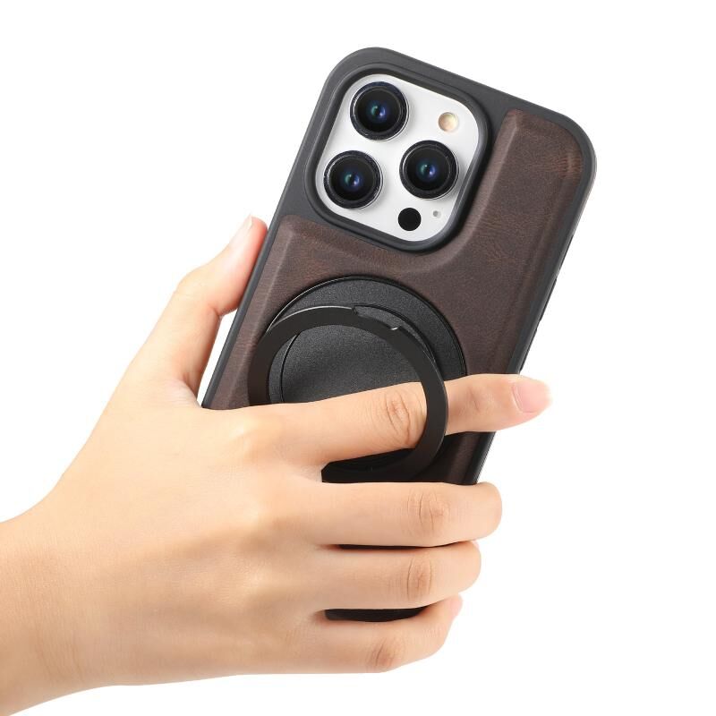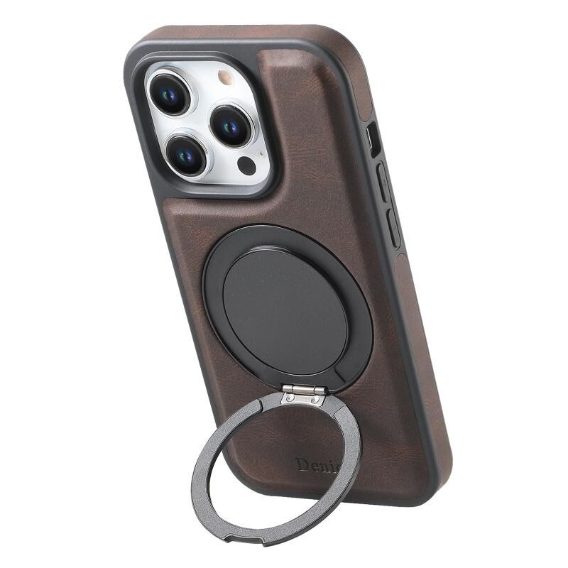 For iPhone 16 Pro Max Denior A14 Skin Feel Rotating Holder MagSafe Phone Case(Brown) (Denior)