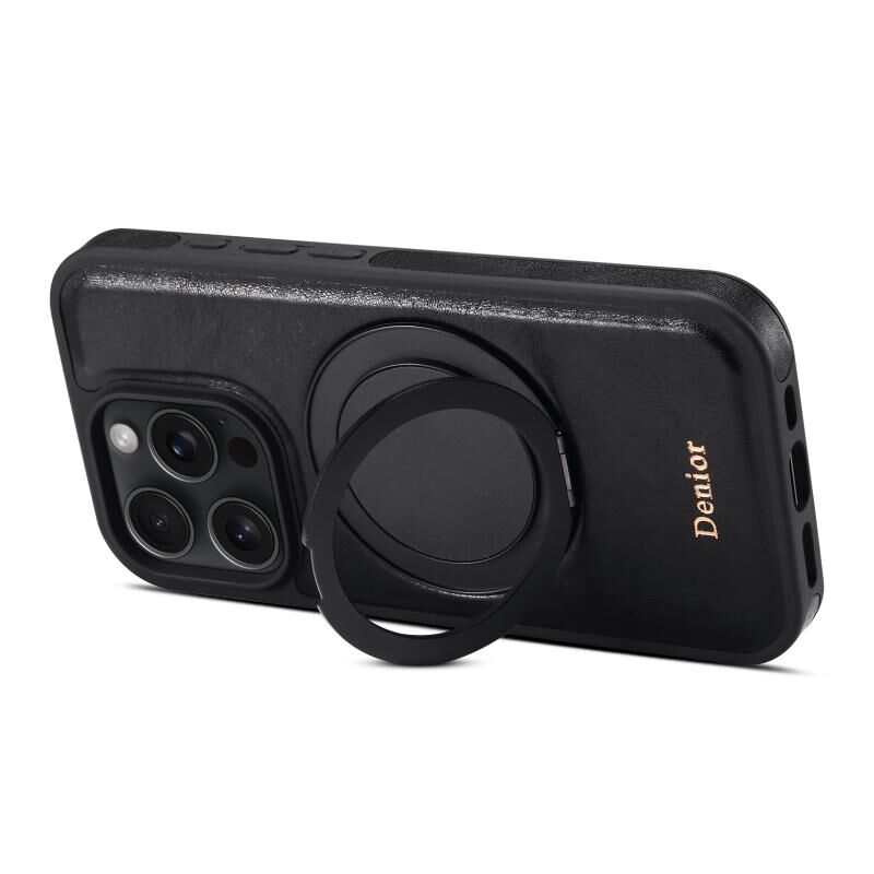 Θήκη τηλεφώνου με μαγνητική βάση για iPhone 16 Pro Max Denior A17 από γνήσιο δέρμα (Μαύρο) (Denior)