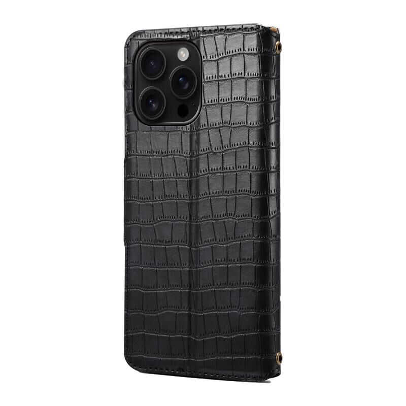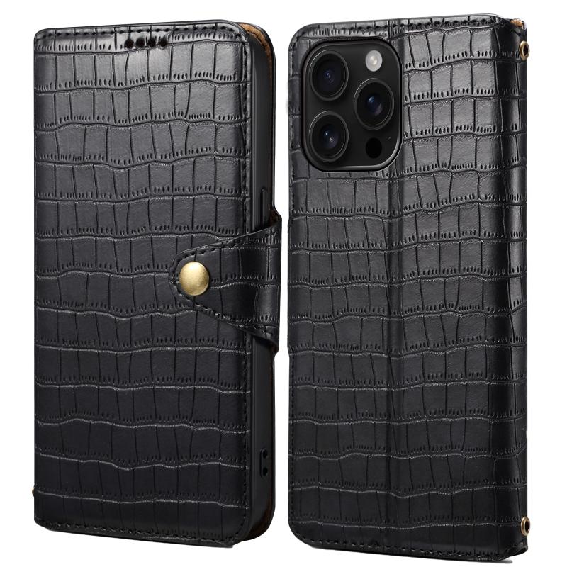 For iPhone 16 Pro Max Denior Crocodile Texture Oil Edge Leather Phone Case(Black) (Denior)