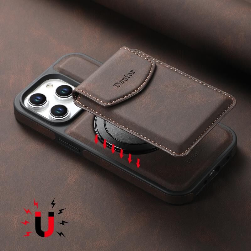 Θήκη τηλεφώνου Denior D20 με αίσθηση δέρματος, μαγνητική βάση MagSafe και αποσπώμενη θήκη καρτών για iPhone 16 Pro Max (Καφέ) (Denior)