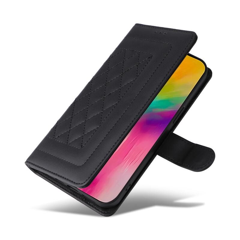 Θήκη για iPhone 16 Pro Max από Δερμάτινο Υλικό με Διάταξη Ρομβοειδούς Πλέγματος, Πτυσσόμενη (Μέντας Πράσινο)
