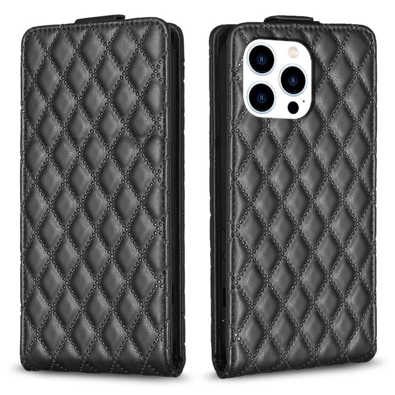Θήκη τηλεφώνου δερμάτινη κάθετη αναδιπλούμενη για iPhone 16 Pro Max με σχέδιο διαμαντόπετρας (Μαύρο)