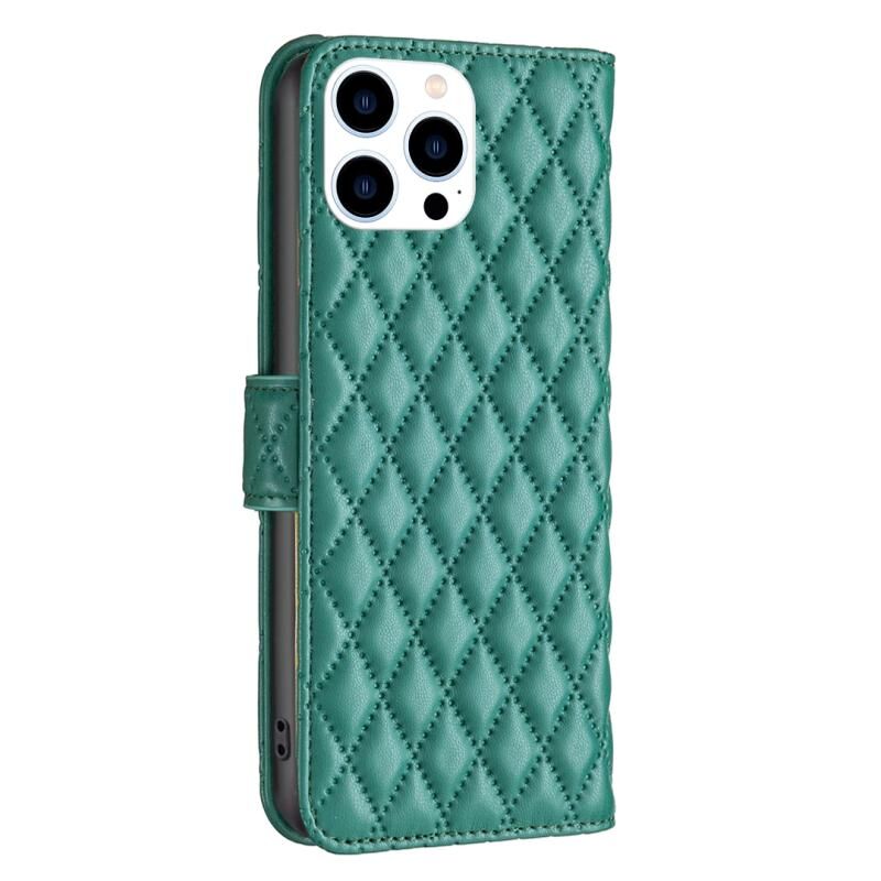 Θήκη τηλεφώνου τύπου πορτοφολιού με δερμάτινη επένδυση και σχέδιο διαμαντόπλεγματος για iPhone 16 Pro Max (πράσινο)