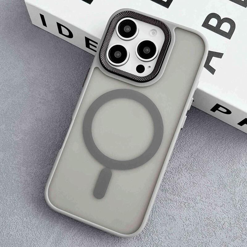 Θήκη τηλεφώνου για iPhone 16 Pro Max, Διάφανη με μεταλλικό πλαίσιο και μαγνητική σύνδεση MagSafe (Γκρι)