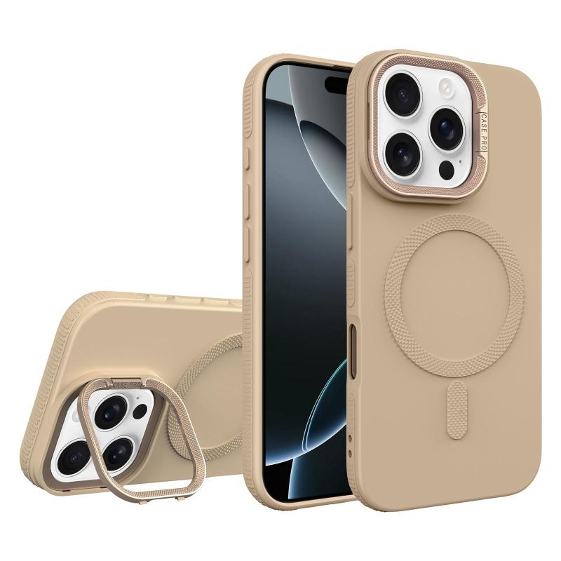 For iPhone 16 Pro Max Diamond Texture Lens Holder Skin Feel MagSafe Phone Case(Desert Gold)