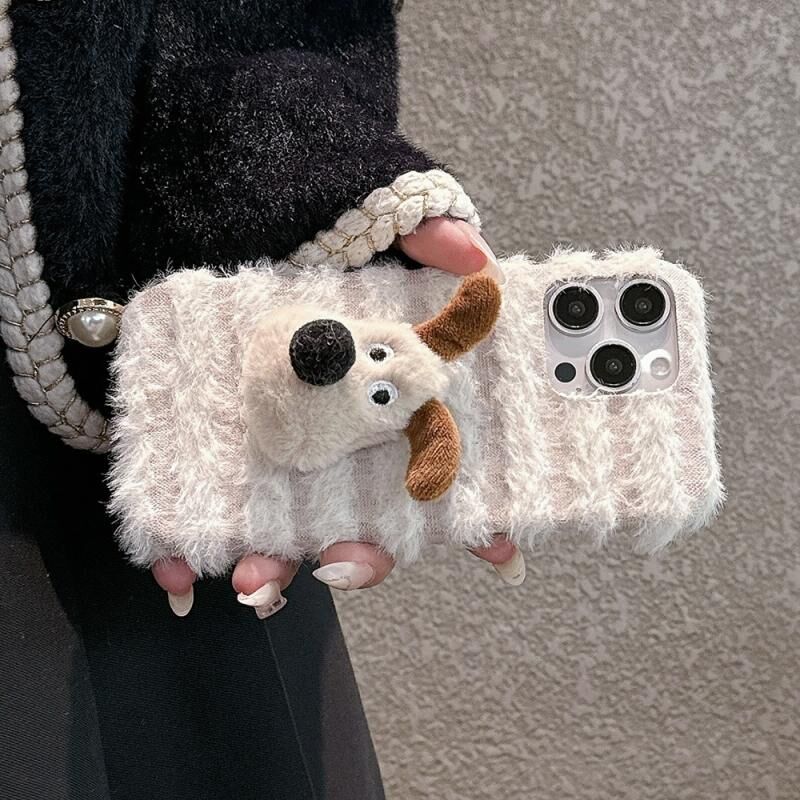 Θήκη τηλεφώνου για iPhone 16 Pro Max, Κούκλα Βελούδινη Υβριδική PU PC (Μπεζ Λευκό)