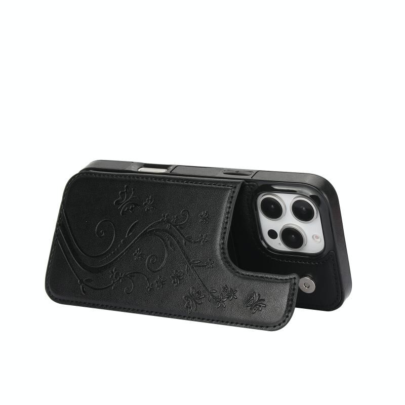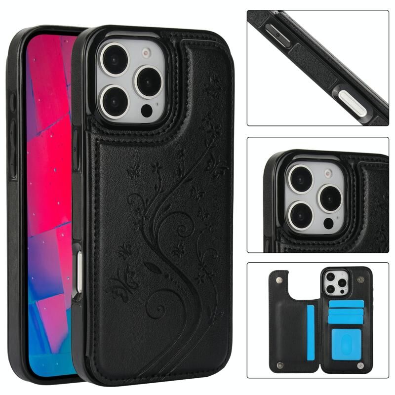 Θήκη τηλεφώνου για iPhone 16 Pro Max, Διπλή Αγκράφα, Embossing Πεταλούδας από PU (Ροζ)