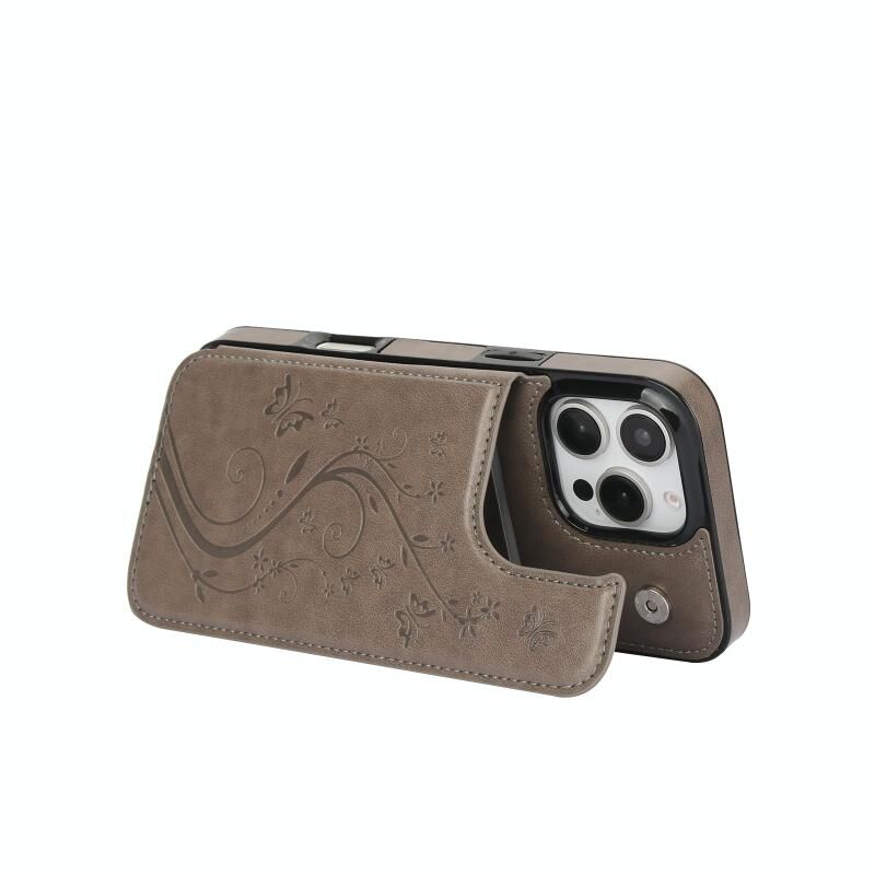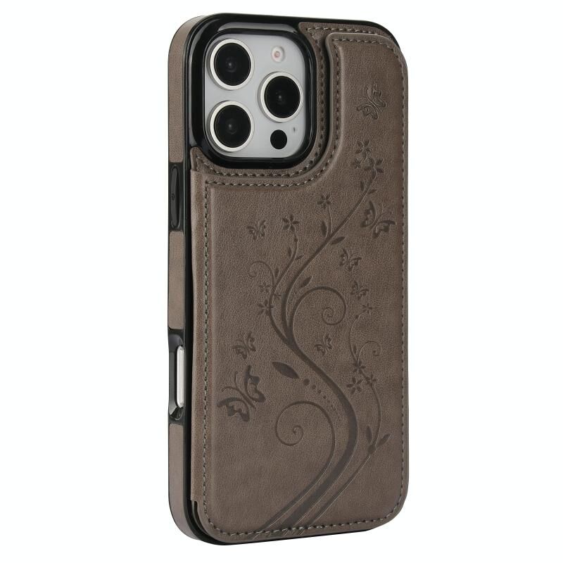 Θήκη τηλεφώνου για iPhone 16 Pro Max, Διπλή Αγκράφα, Embossing Πεταλούδας από PU (Ροζ)