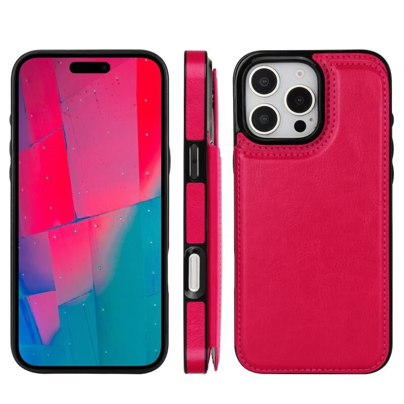 Θήκη τηλεφώνου για iPhone 16 Pro Max με διπλή αγκράφα, υφή Crazy Horse PU (Κόκκινη)