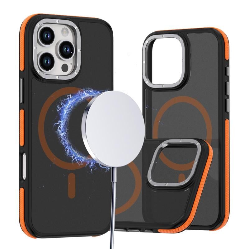 Θήκη τηλεφώνου MagSafe διπλής απόχρωσης με αίσθηση δέρματος για iPhone 16 Pro Max (Μαύρο Πορτοκαλί)