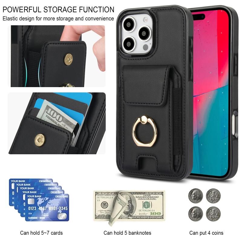 Θήκη τηλεφώνου για iPhone 16 Pro Max με ελαστική τσέπη για κάρτες και δαχτυλίδι στήριξης (Λευκό)