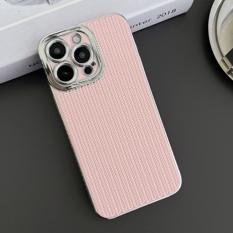 Θήκη τηλεφώνου TPU με υφή κόκκου και επιμετάλλωση ασημί για iPhone 16 Pro Max (Κόκκινο του Ρόδου)